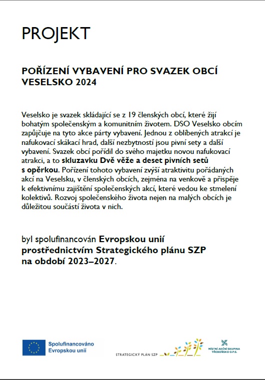 Úvodní stránka > Projekty > Pořízení vybavení pro Svazek obcí Veselsko 2024